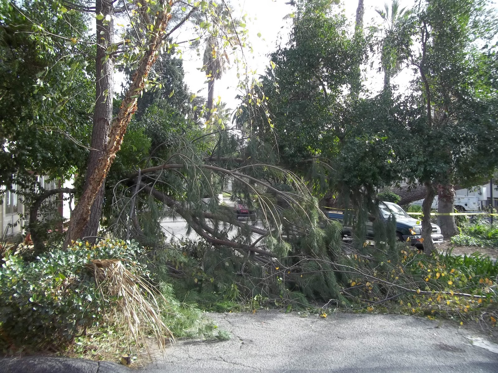 The next morning the whole neighborhood was outside in their pajamas looking dazed and confused at all the damage and destruction. 100 foot tall trees had crashed to the ground EVERYWHERE. Crushing cars and houses. Blocking most of the streets. All our power was out and a state of emergency was declared for the whole area.